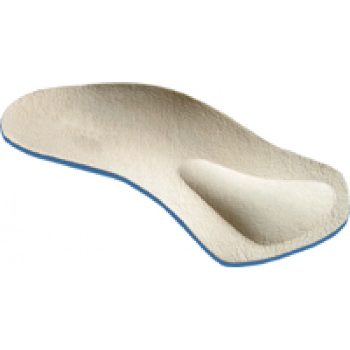 Polyurethane shock absorbing foam, non bottoming, three-quarter insole with metatarsal support. Ready to use and easy to customise soft density base.